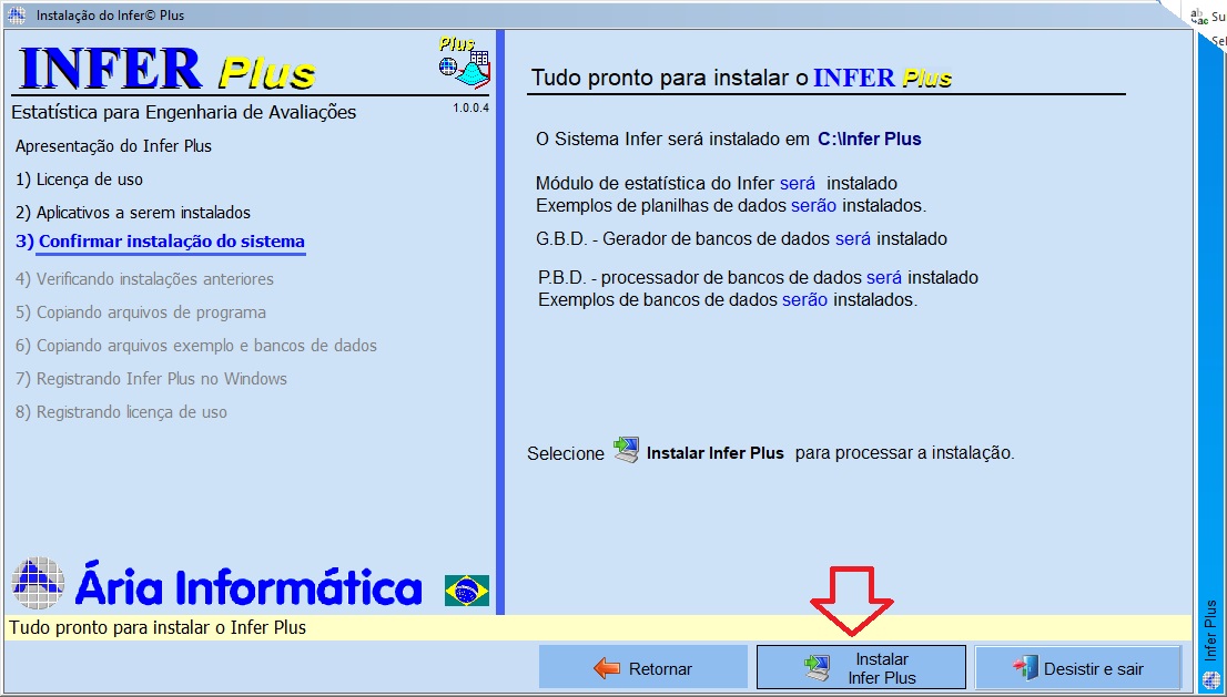 • Clique em “Prosseguir Instalação” em cada tela e siga as instruções do instalador até a opção de “Instalar Infer Plus”.